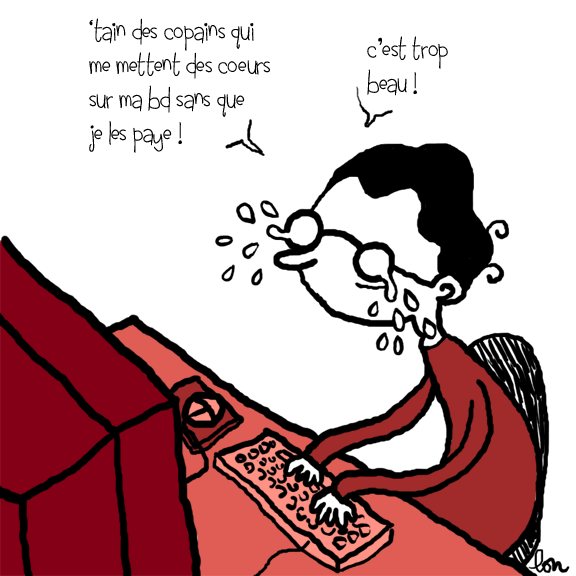 A part ça, ils sont contents de mes ventes (très même, merci aux bulledairiens qui m'ont acheté :)) et aiment beaucoup ce que je fais. J'ai beaucoup de chance, voilà tout.