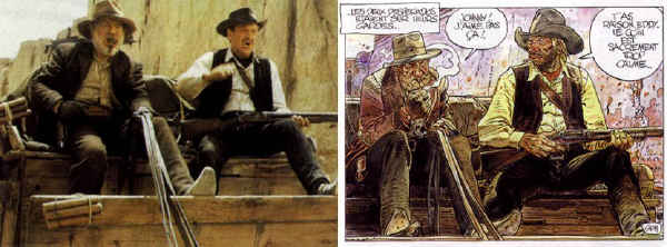 | |  |  | Bon, une fois n'est pas coutume, mais je me cite ( post 88949) : "Sinon Giraud a aussi pompé une de ses couverture de Blueberry sur unr affiche de film, je ne sais plus lequel, faidrait rechercher; mais il ne s'en ait jamais caché.".