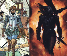 |  |  | c'est d'autant plus étrange que pour le dessin de Juillard, le personnage tient son épée dans sa main gauche alors que son fourreau est à gauche lui aussi ce qui prêterait à penser qu'il est droitier !!! de là à dire que c'est du plagiat !! pour les autres, c'est encore plus frappant. j'imagine que se sont de jeunes auteurs qui ont beaucoup aimé l'oeuvre de Frazetta.