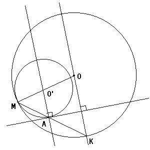 demonstration: soit K le point d'intersection de OM avec C. OK=O'A=R, OM=O'M, donc MA=MK.