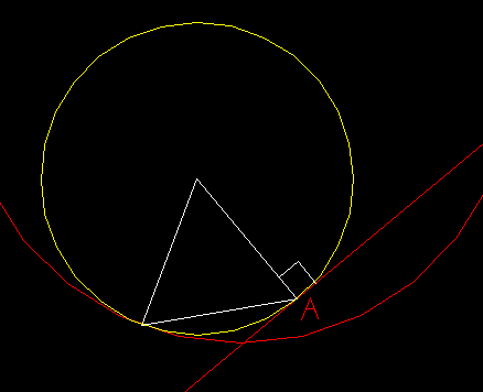 en fait j'avais un bout de bordure courbe (le cercle du debut) que je devait rejoindre juste a l'extremité d'un mur droit existant (A c'est l'extremité du mur), il fallait que la bordure prolonge le mur sans angle... voila voila