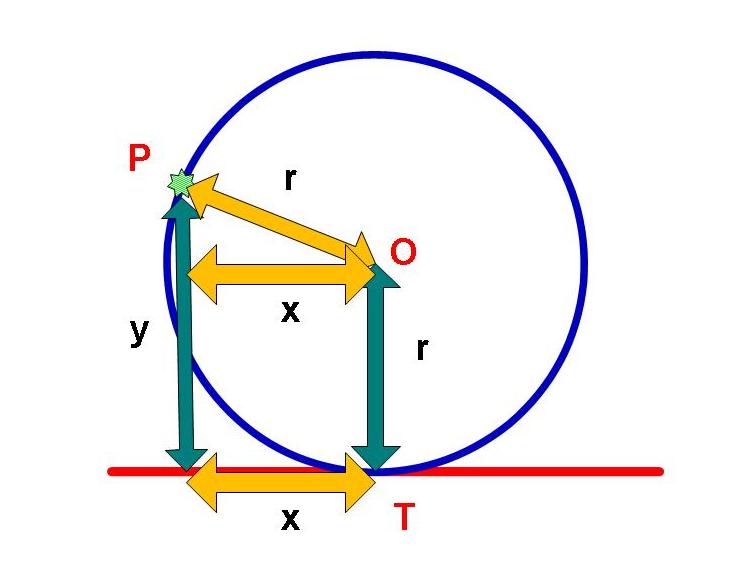 Je vous demande [je vous mets au défi ah ah ah] de me définir la distance du centre de ce cercle par rapport a (D) en fonction de la position de T et de la distance entre P et la (D)