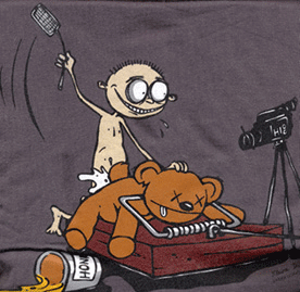 Je me débrouille peut-être mal mais, je n'ai jamais trouvé de goodies Larcenet. Comme des T-Shirt un peu délirants ou des pages en poster dont je me sers pour amuser mes amis lorsqu'ils se rendent en un lieu intime après mon fameux chili.
