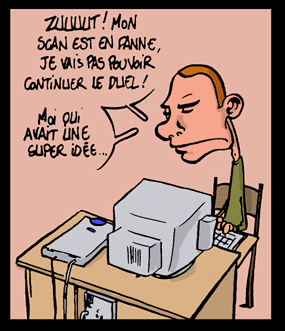 |  |  | Le dessin est fini, je le scanne, je le mets en couleurs, et je l'envoie, bande de médisants ! |