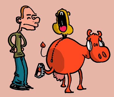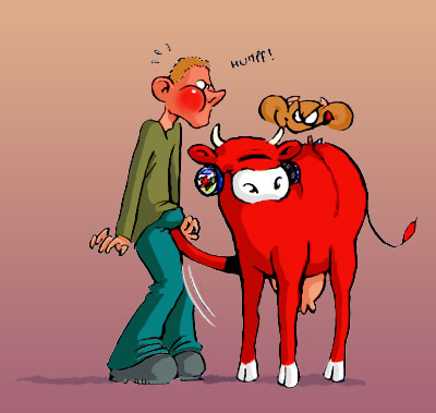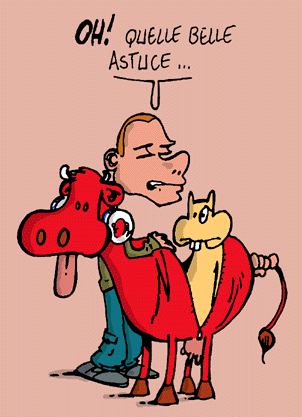 | |  |  | Je me disais aussi, la Vache qui rit ne peut pas exister. Même pour une vache, c'est pas possible d'avoir l'air aussi con! |