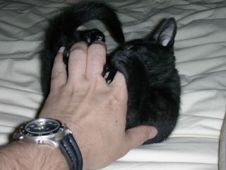 Près de mon labo, y a une chatte qui vient d'avoir une portée. Ils sont encore plus petits que Chausette, c'est rigolo :o) |