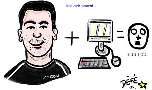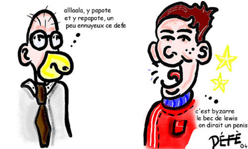 bonjour, c'est moi defe, je viens de recevoir ma tablette graphique et oui c'est mon anniv le 24 mai, pour la tester j'ai fait deux petits dessins, l'un parle de la futur rencontre entre moi et lewis, l'autre parle des compétences de sfar en matière d'ordinateur et d'internet, tt le monde sait qu'il est nul dans cette activité lol.